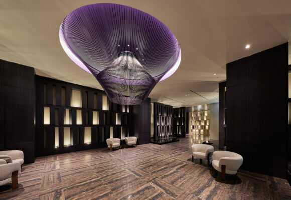 高輪ゲートウェイ駅直結の新街区「TAKANAWA GATEWAY CITY」にマリオット・インターナショナルの最上位ブランド「JWマリオット」が首都圏初進出となる国内2軒目として開業しました。この場所は、かつての名勝・御殿山があり、富士山や東京湾を望む風光明媚な場所・花見の名所として江戸の人々に親しまれていました。かつての「丘」を「建物」に変換し、高層階に点在する空間を散策しながらウェルビーイングに満ちた現代の「丘」を創造しています。